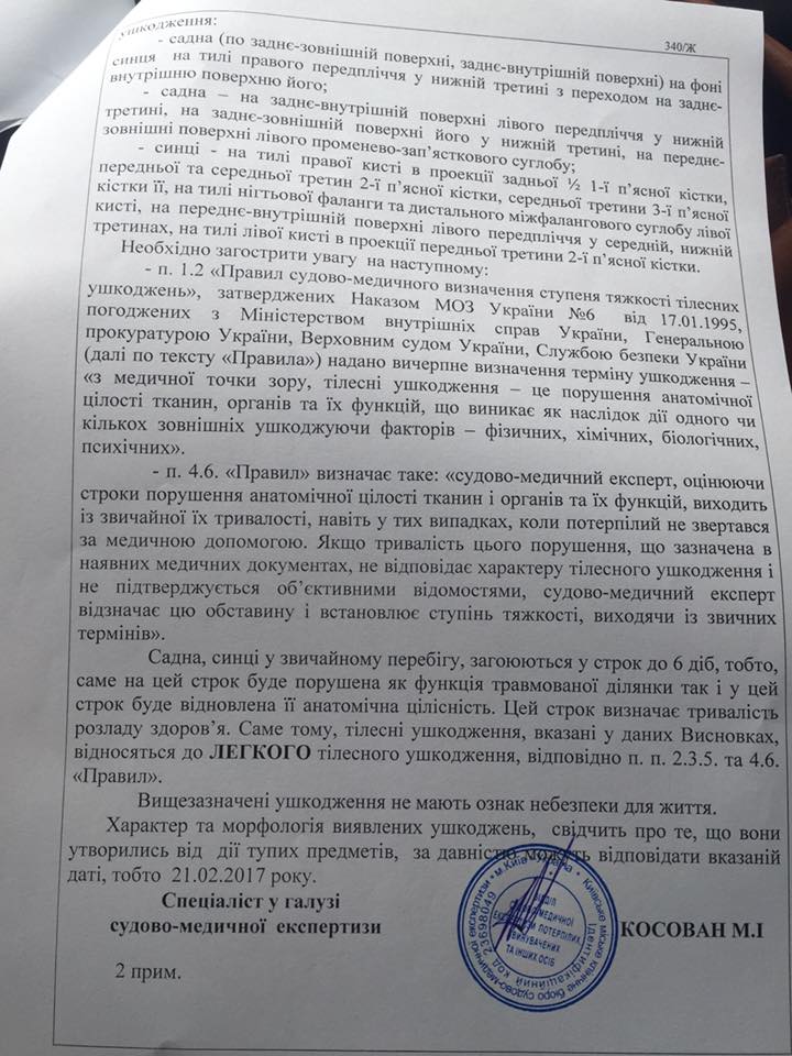 Сама же Виктория Кицюк выложила на своей странице в Facebook видео задержания и документы о снятии побоев.