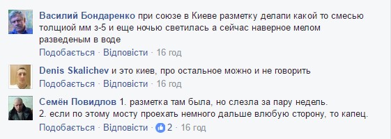 В комментариях киевляне-водители массово возмущаются по поводу моста без разметки.