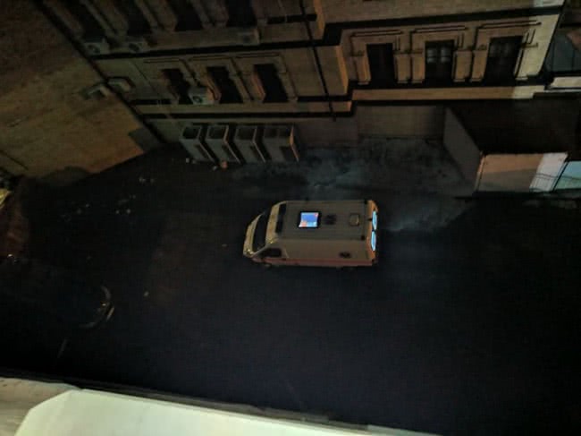 У внутрішньому дворі стоїть карета “швидкої” у якій привезли Насірова.