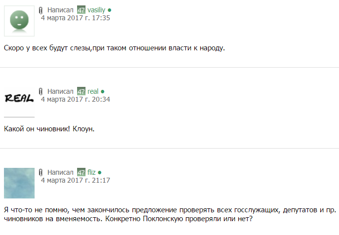 "Я что-то не помню, чем закончилось предложение проверять всех госслужащих, депутатов и пр. чиновников на вменяемость. Конкретно Поклонскую проверяли или нет?" - прокомментировали на сайте данную новость.