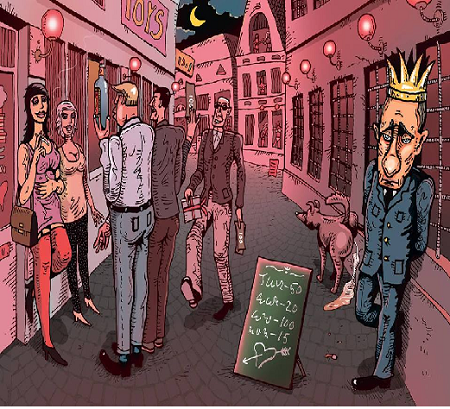 В соцсетях набирают популярность шаржи, главным героем которых стал президент РФ. Грустный Путин в золотой короне проигрывает девушкам с «пониженной социальной активностью». С таким персонажем, который, как намекает автор картинки, хуже проститутки, не хотят иметь дело даже клиенты борделей.