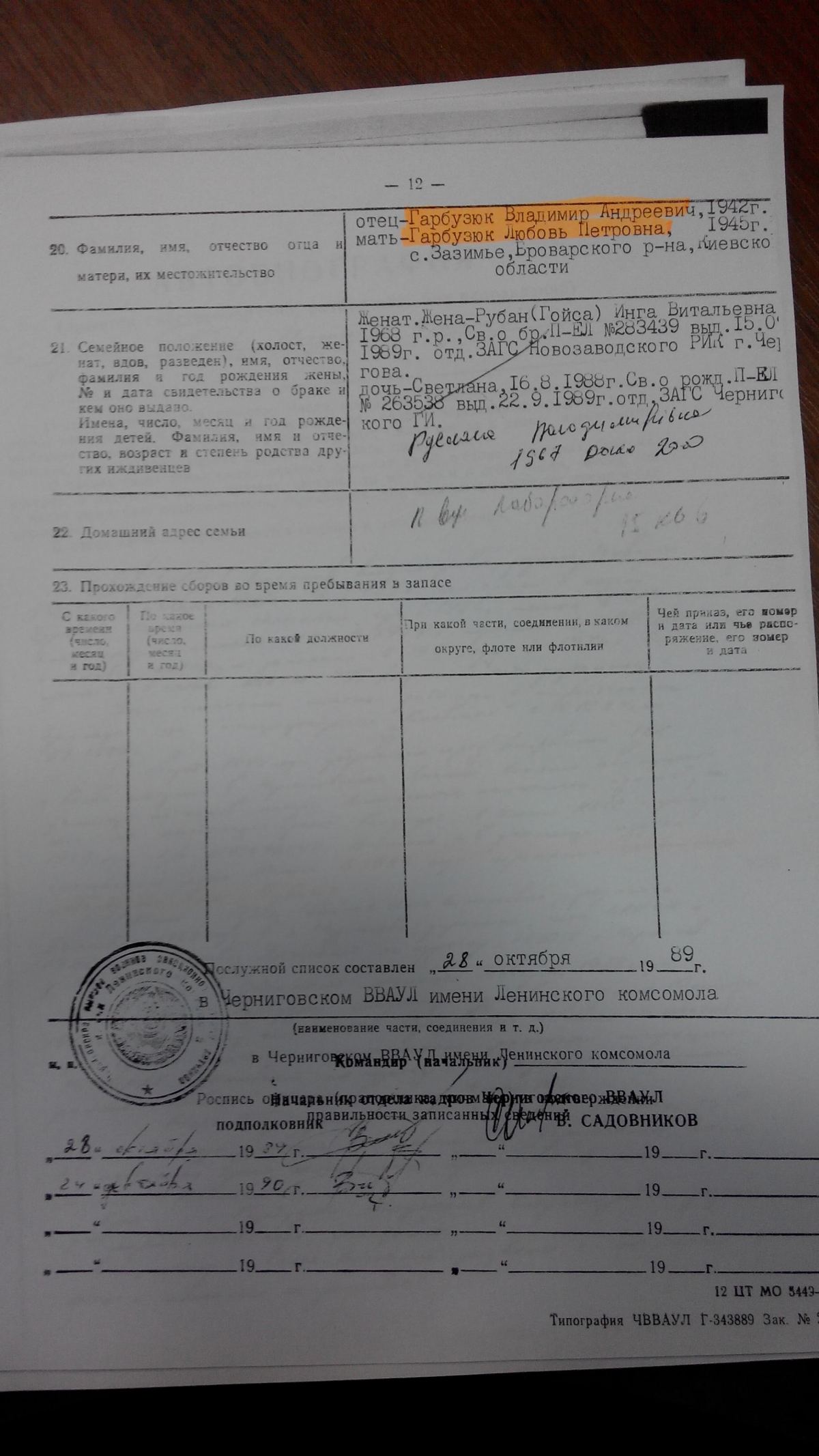 В характеристике Рубана-Гарбузюка за первый курс указывалось, что курсант Гарбузюк зарекомендовал не достаточно дисциплинированным военнослужащим. Однако в последствие его характеристика улучшилась.