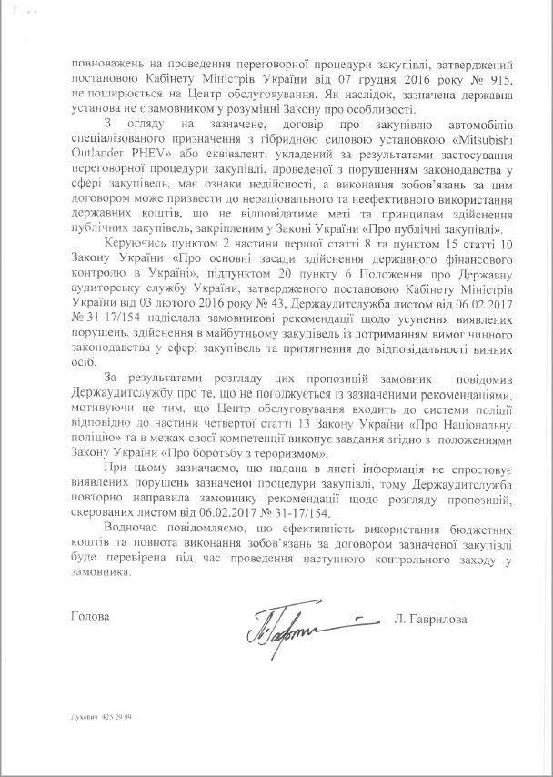 Договор на закупку гибридных внедорожников для Национальной полиции за так называемые киотские деньги "имеет признаки недействительности".