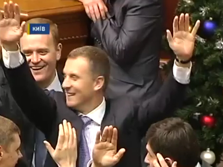 | Ярослав Москаленко голосував за диктаторські закони 16 січня двома руками. Кадр телеканалу "Україна" |