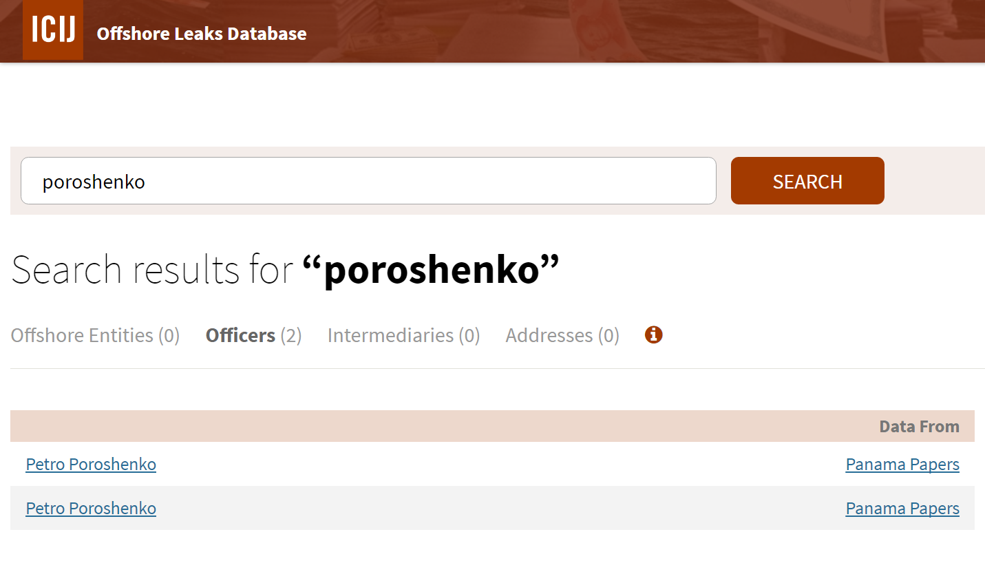 Как известно, в базах сайта действительно указаны два оффошных адреса Петра Порошенко: