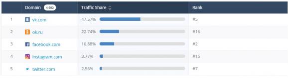 Російські соціальні мережі досі є найбільш відвідуваними в Україні. Безумовне лідерство займає ВКонтакте - стабільно 2-ге місце в рейтингу.