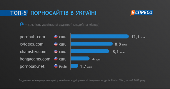 Топ-5 найпопулярніших порносайтів в Україні в лютому 2017 року. Еспресо.TV