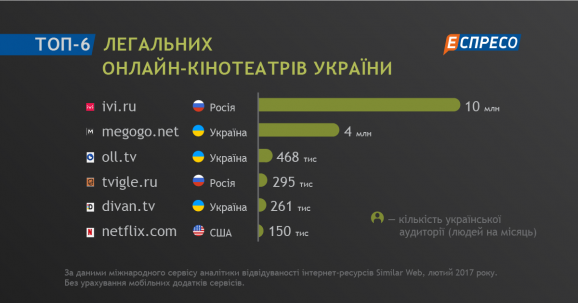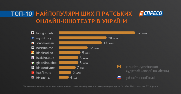 Топ-10 піратських кіносайтів в Україні в лютому 2017 року. Еспресо.TV