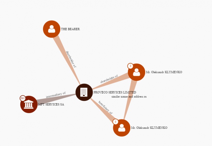 Также в документах указан бежавший из Украины Александр Клименко, который является бенефициаром компании PROVECO SERVICES LIMITED зарегистрированной еще в 1995 году на Британских Виргинских островах.