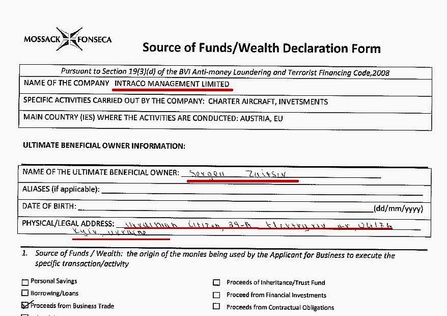 Согласно декларации об активах виргинской оффшорной компании Intraco Management Ltd ее бенефициаром является гражданин Украины Сергей Зайцев, человек с таким же именем и фамилией является заместителем генерального директора корпорации «Рошен», а также совладельцем ООО «Центрально-Европейская Кондитерская Фабрика».