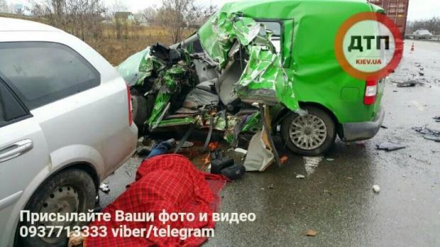 Частини Кадді врізалися в Рено і Шевроле. Водій і дівчина пасажир ззаду загинули миттєво. Їх тіла розірвало на частини. Вирізали Васильківські рятувальники ГСЧС. Пасажир Кадді і водій Шевроле з множинними травмами терміново госпіталізовані.