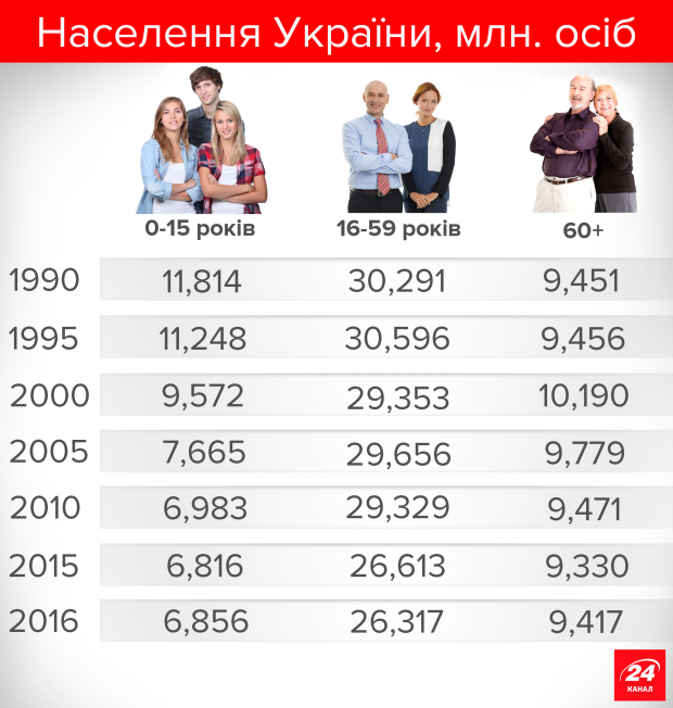Дуже тривожний сигнал для країни – різке зменшення кількості дітей – якщо в 1990 році в Україні мешкало майже 12 мільйонів осіб у віці до 15 років, то зараз – лише 6,8 мільйона, що з часом серйозно відіб’ється на економіці країни.