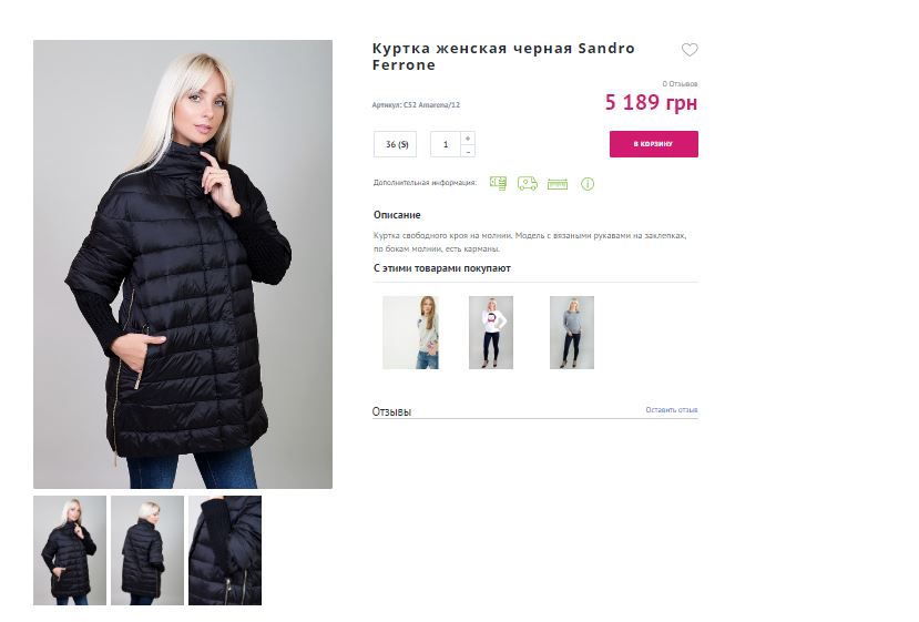 Такой пуховик как у Савченко можно приобрести за 5189 грн. Это куртка свободного кроя. Модель с вязаными рукавами на заклепках, по бокам молнии, есть карманы.