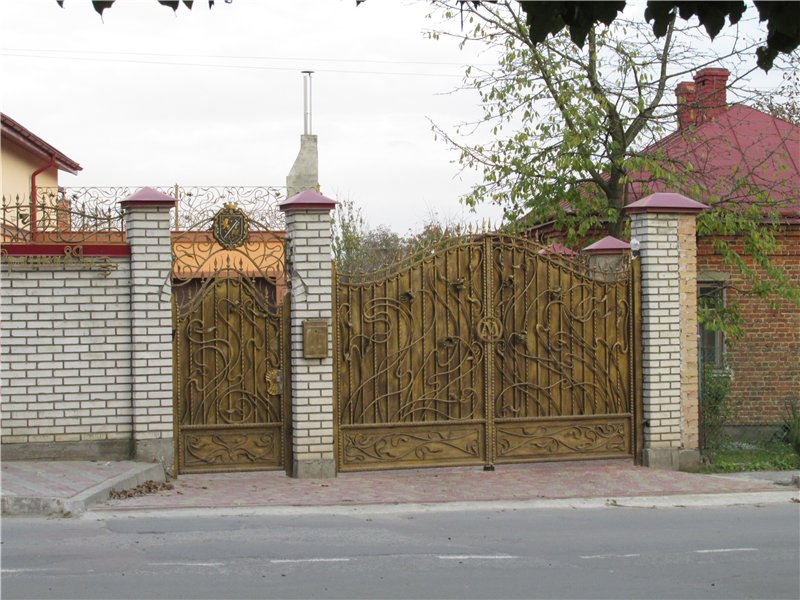 Кованные ворота увенчаны собственным гербом и кованной буквой «М».