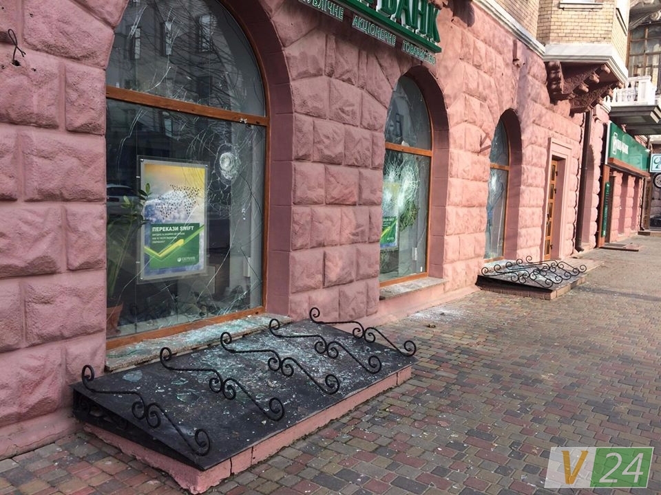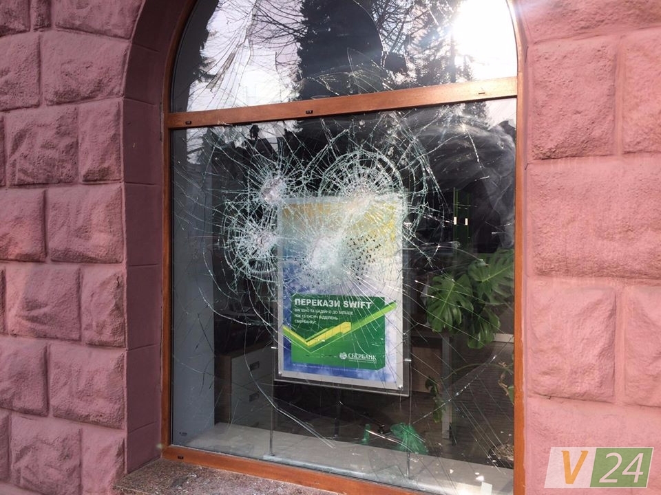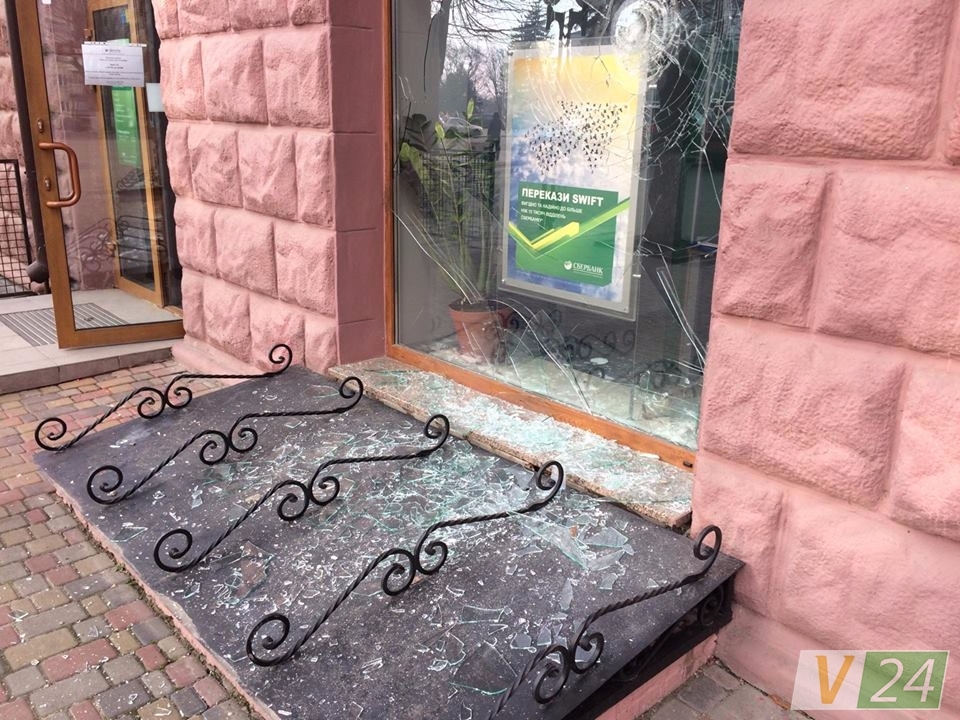 В Луцке разгромили окна Альфа-банка и "Сбербанка"