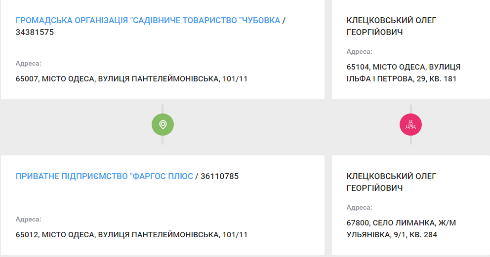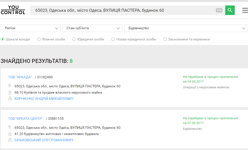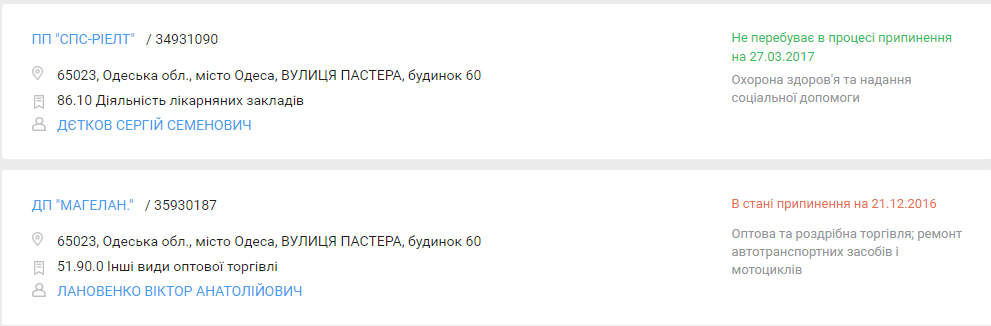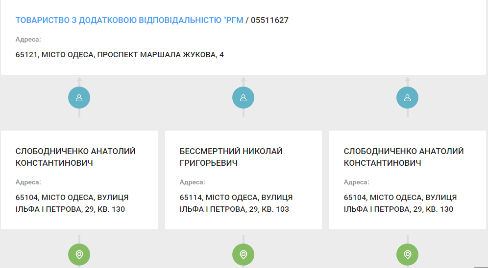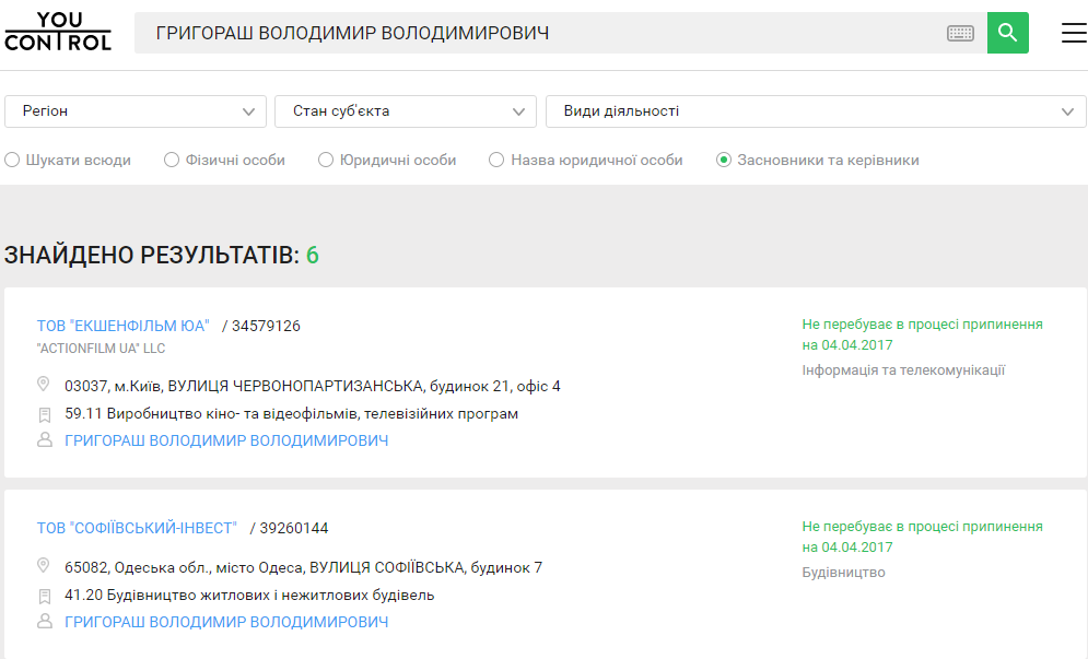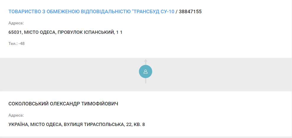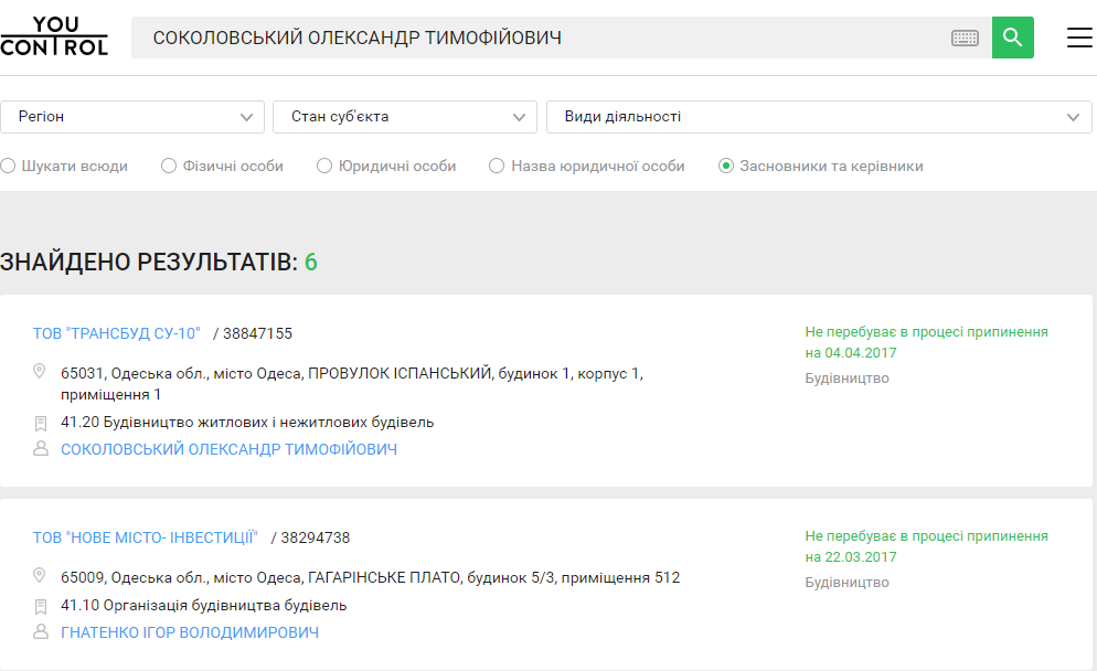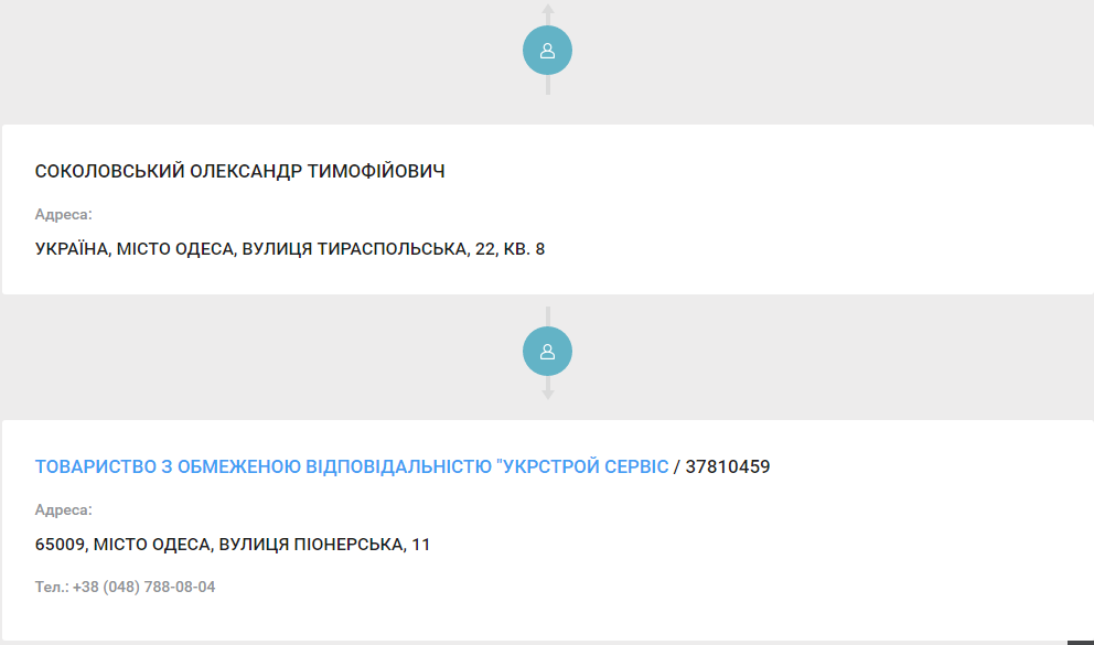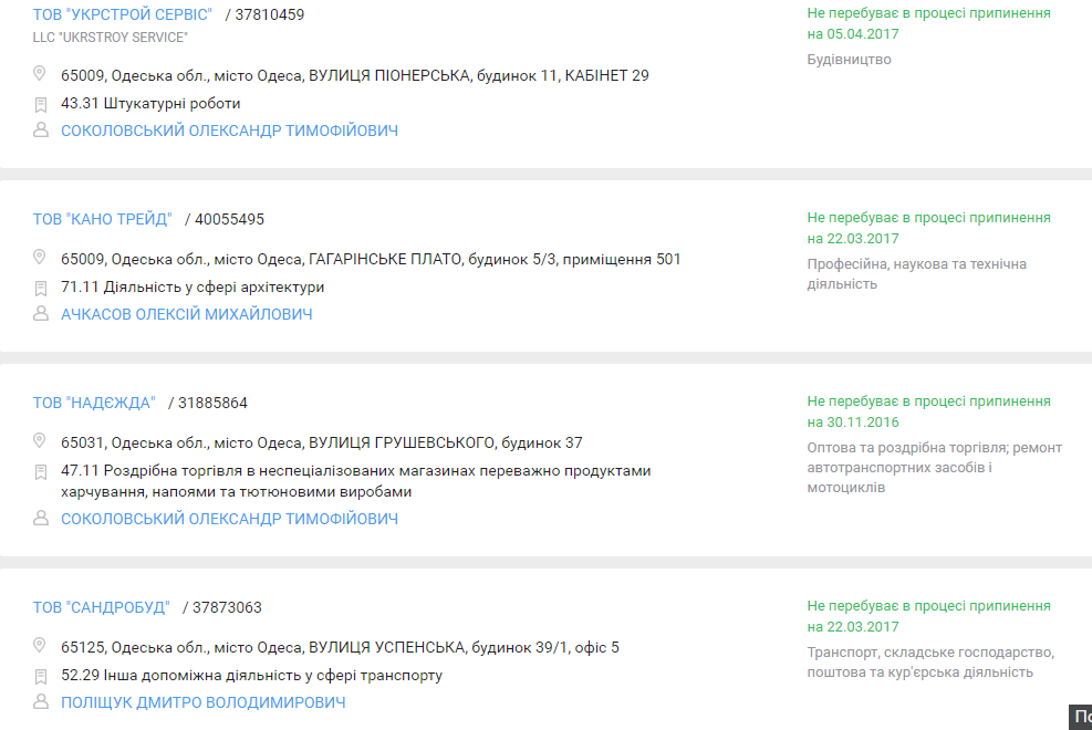 Вместе с тем, анализ двух компаний - "Менеджмент инвестментс " и "Укрстрой сервис" - доказывает, что они взаимосвязаны: по одному и тому же адресу зарегистрирован ряд фирм, выводящих на Александра Соколовского.