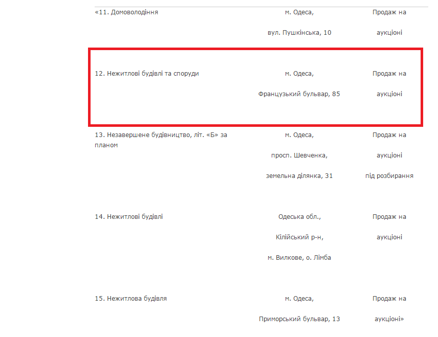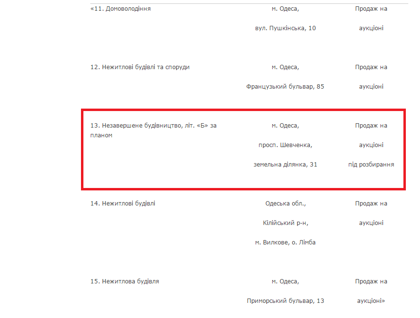 А началась эта история с сессии Одесского областного совета, состоявшейся 29 мая 2015 года. Тогда было принято решение внести изменения в перечень объектов совместной собственности территориальных громад области, которые подлежат приватизации. Среди них и незавершенное строительство на проспекте Шевченко, 31 - так называемое свайное поле за Дворцом спорта: данный объект подлежал продаже на аукционе под разборку свай. Аукцион действительно состоялся - демонтаж свай продали за 1,160 миллиона гривен.