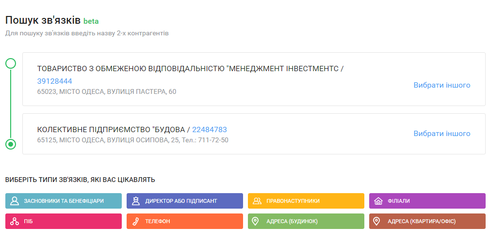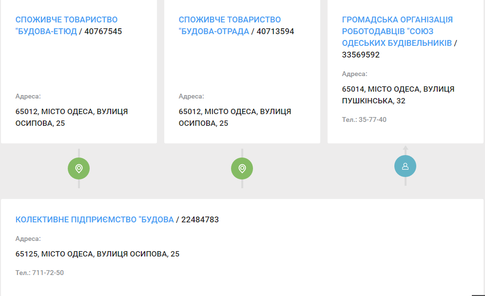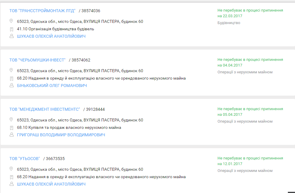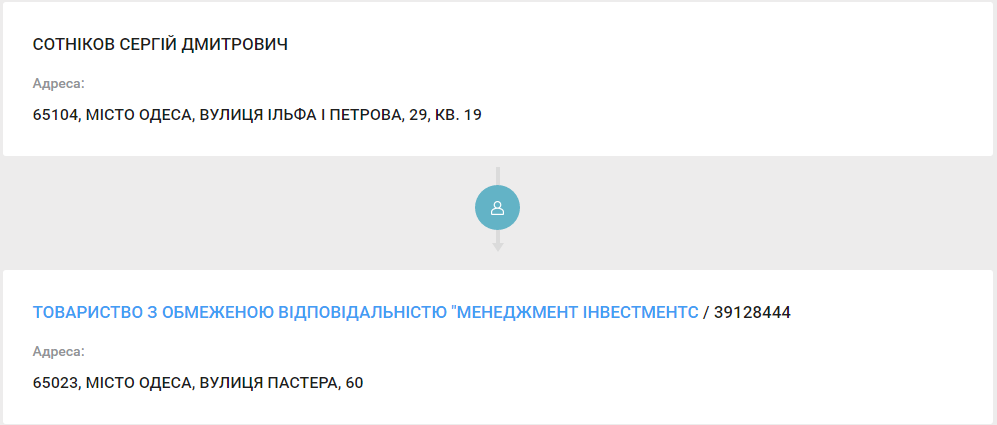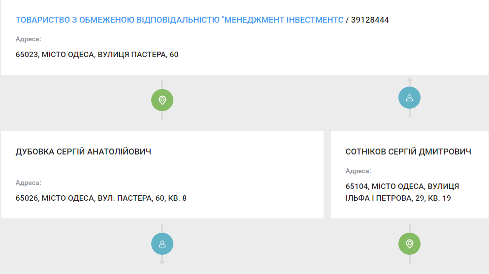 Также просматривается связь ООО "Менеджмент инвестментс" с одним из самых крупных застройщиков города коллективным предприятием "Будова", которое построило в Одессе множество жилых многоэтажных домов, бизнес-центр "Покровский", офисно-жилой комплекс "Жозефина", Арабский культурный центр.