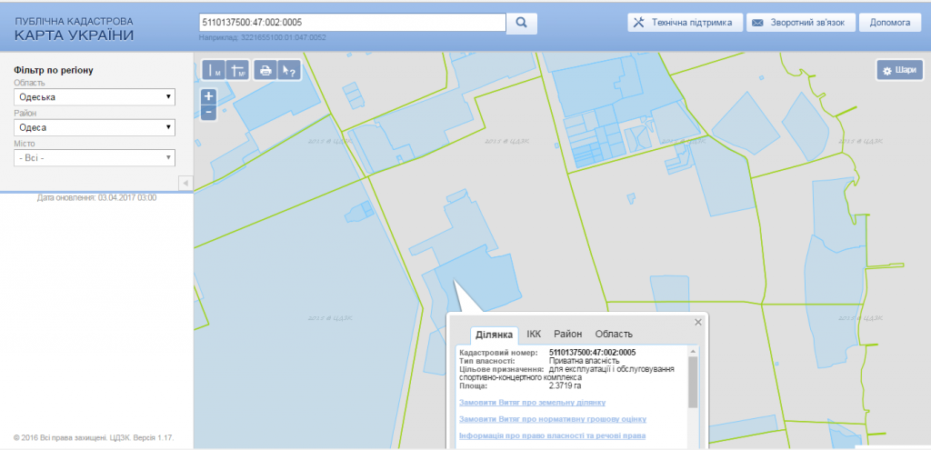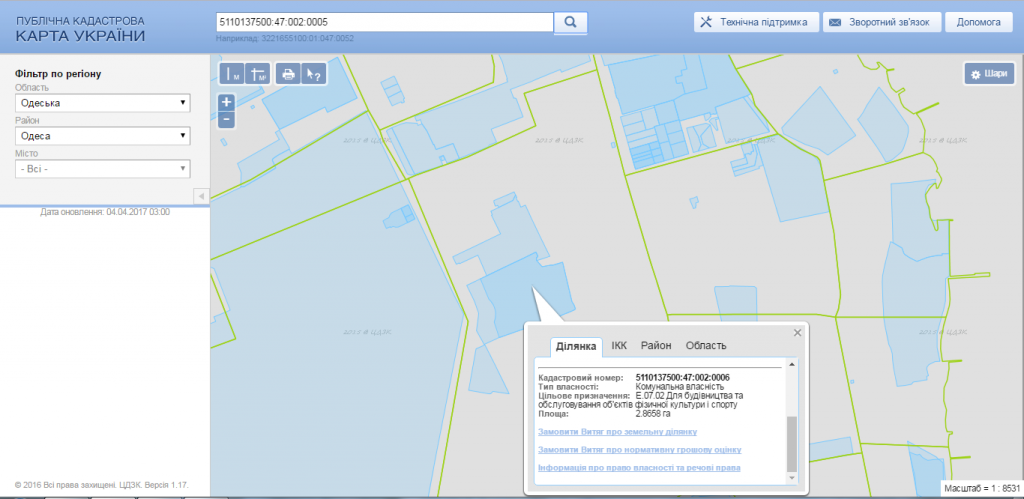 Следует отметить, что Дворец спорта все еще в собственности одесской громады - официально собственником объекта является облсовет. Согласно кадастровой карте Украины, участок, на котором ведется строительство высотки, по всей видимости, не предназначен под застройку: так, целевое назначение участка площадью 2,3719 гектара, находящееся в частной собственности (владелец не указан), - эксплуатация и обслуживание спортивно-концертного комплекса.