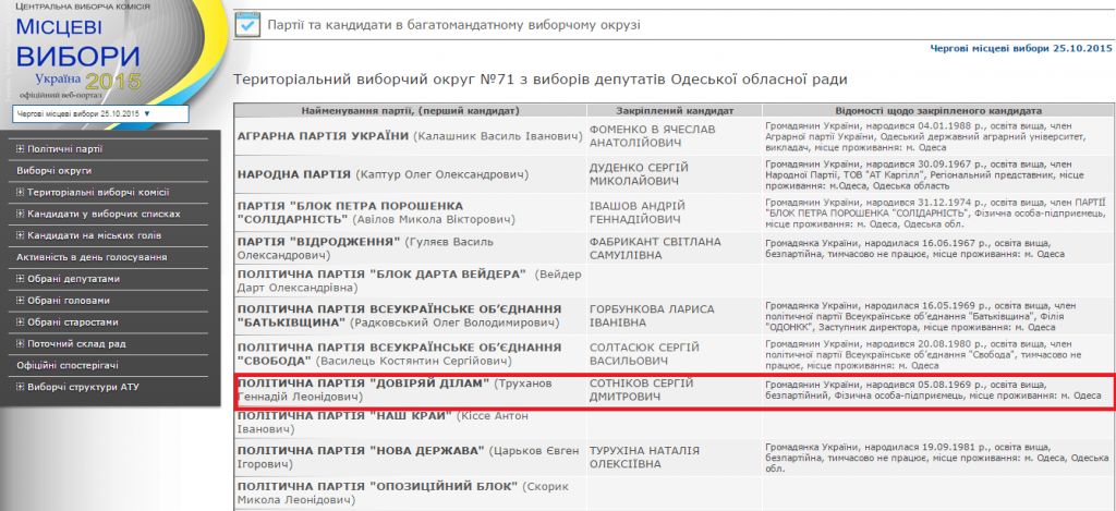 К слову, Сергей Сотников баллотировался на прошлых местных выборах в Одесский облсовет от партии мэра города Геннадия Труханова "Доверяй делам".