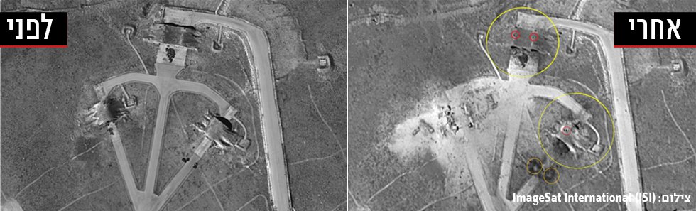 Снимки зафиксировали разрушения 10 складов с оружием, 7 заправочных станций. Также полностью уничтожен зенитно-ракетный комплекс SA6. Также повреждены еще 4 комплекса, нанесен значительный ущерб взлетно-посадочной полосе аэродрома.