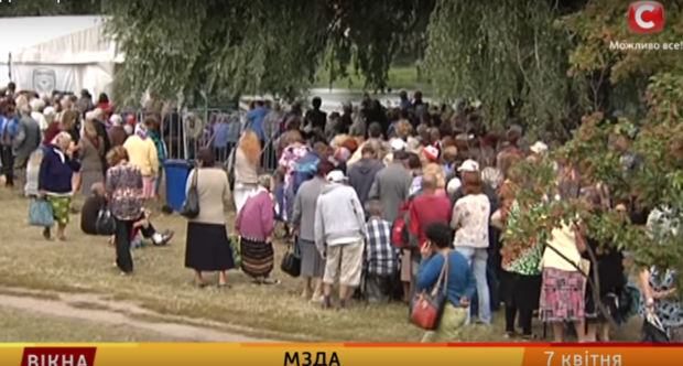 "Между тем, в Чернигове горожане два года назад вытоптали поле, чтобы прийти за продуктовыми наборами перед выборами, по три часа стояли в очереди, жарились на солнце. В Румынии за такое сажают…" – говорится в сюжете.