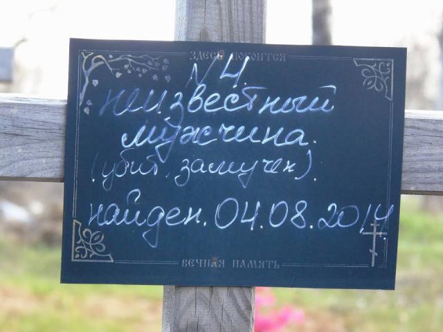 Есть также могилы жертв боевиков. «№ 4 Неизвестный мужчина (убит, замучен). Найден 4.08.2014», — написано на одной из таких.