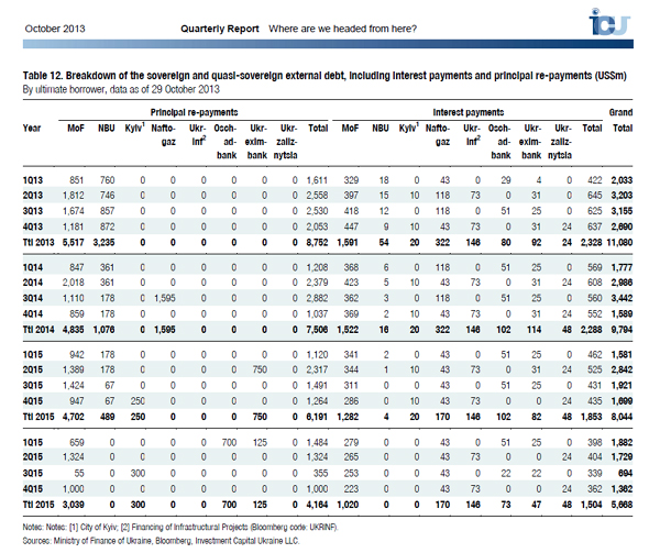 По данным компании "Инвестиционный Капитал Украины", в IV квартала Минфин и Нацбанк должны выплатить по внешним обязательствам 2,7 млрд дол. Из этой суммы в октябре погашено всего 0,7 млрд дол.