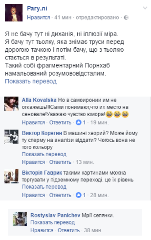 Користувачі соціальних мереж бурхливо відреагували на помпезний антураж заходу і провокаційні полотна. Дівчина, як видно, горда, що її зображення перетворюють на картини, а ось інші відвідувачі явно не в захваті:
