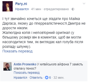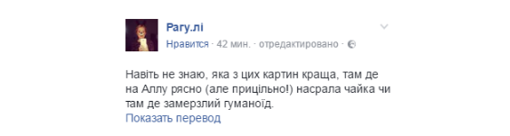 "За останні півроку вже вдруге натикаюся на відкриття виставки, де художник головну ставку робить на своє зображення Алли Добкіної. Це наводить на роздуми. Як мінімум про те, що Алла Добкіна вирішила, що їй місце в анналах художньої історії і про те, що є ті люди, які їй ці аннали влаштовують в найширшому сенсі цього слова. На виході маємо те, що маємо", - пише спільнота "Рагу.лі" на своїй сторінці в Facebook.