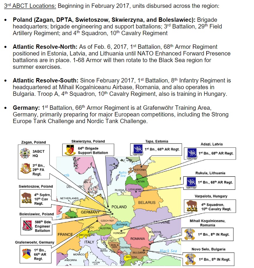 Ну а пока, уже прибывшая в Восточную Европу 3я бронетанковая бригадная боевая группа потихоньку обживается на новом месте и отправляет свои подразделения по всей протяженности восточных границ альянса: