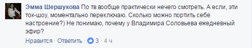 Пост Поплавской получил около 480 лайков и около 100 комментариев. Большинство пользователей соглашались с тем, что уровень российского ТВ позорно низкий, программы – бессмысленные, непрофессиональные и тенденциозные.