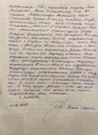 Напомним, сайт «15 минут» публиковал письмо Романа Сущенко, которое тот отправил первому заместителю министра по вопросам оккупированных территорий Украины Юсуфу Куркчи.