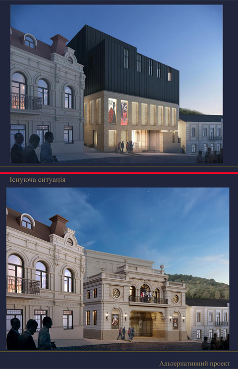 Он добавил, что театр будет гармонировать со всей улицей – его карнизы и окна подобные тем, что на соседних домах на Андреевском спуске.