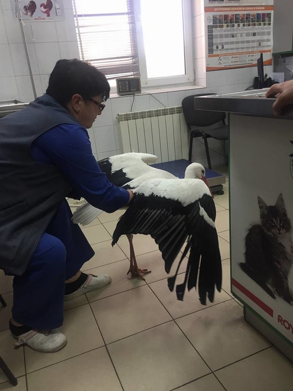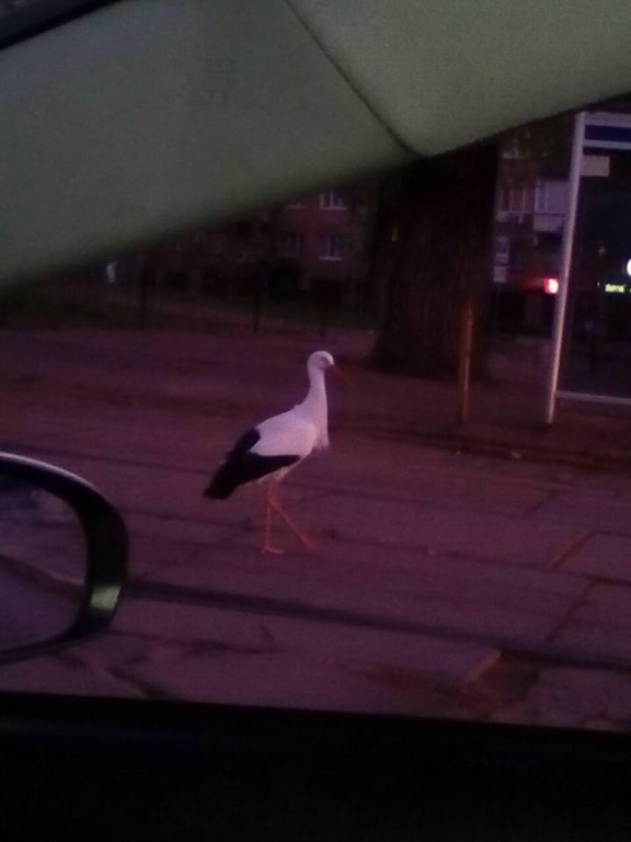 В центре Киева полицейские поймали аиста, который разгуливал по проезжей части.