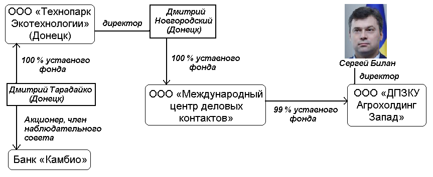 А учредителем ООО "Технопарк Экотехнологии", как видим, является Дмитрий Тарадайко. Семья Тарадайко владела крупным пакетом акций донецкого банка "Камбио". Сам Дмитрий Тарадайко входил в наблюдательный совет, а его мать Наталья Тарадайко была председателем правления банка. В конце 2014 года НБУ признал банк "Камбио" неплатежеспособным, затем начал процедуру его ликвидации.