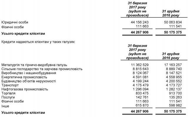 «Станом на 31 березня 2017 року кредити та депозити банків включають кошти в сумі 2 496 891 тис грн (станом на 31 грудня 2016 року:8 816 409 тис грн), отримані від материнського банку у доларах США і євро.