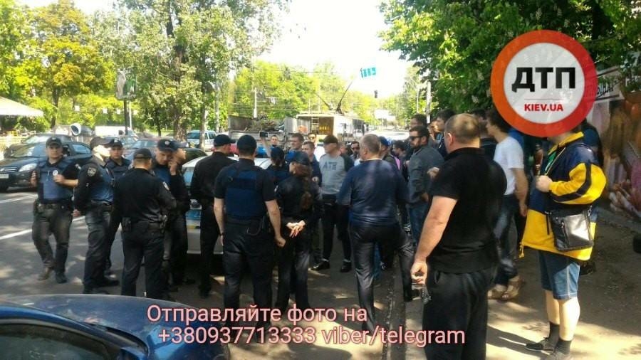 В Киеве на Дорогожичах произошли масштабные разборки между полицией и группой поддержки водителя автомобиля с еврономерами, который нарушил правила дорожного движения.
