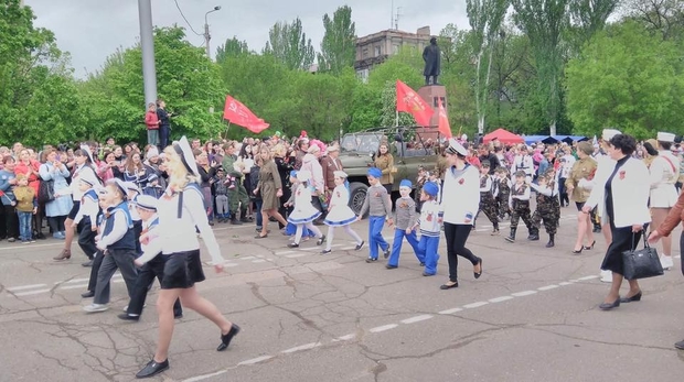 На пропутинскую акцию "Бессмертный полк" в оккупированном боевиками Алчевске согнали технику, якобы отвоеванную у ВСУ.