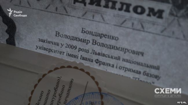 Мова йде про документ про освіту бакалавра у Львівському національному університеті ім. Івана Франка. Саме на його підставі Бондаренко отримав ступінь спеціаліста в Київському національному університеті ім. Тараса Шевченка.