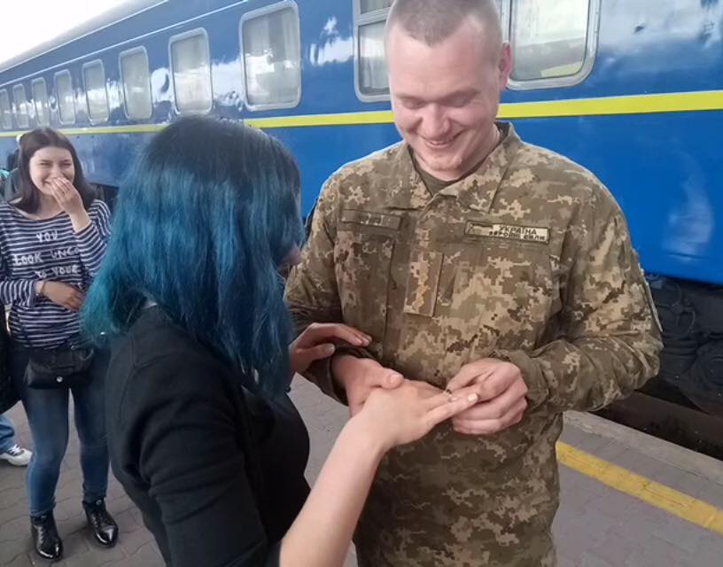 Офицер, вернувшись домой из АТО, прямо на перроне сделал предложение любимой
