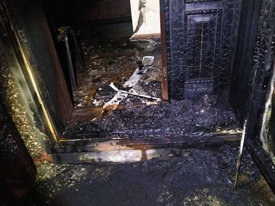 В результате пожара пострадал холл здания, в котором располагается офис партии.