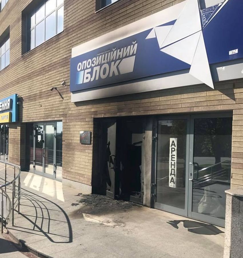 На этой неделе офисы «Оппозиционного блока» поджигали уже трижды. Первый поджог произошел 11 мая, на проспекте Яворницкого, 5 в Днепре. В половине четвертого утра двое мужчин в капюшонах бросили несколько бутылок с зажигательной смесью в здание, после чего скрылись на автомобиле. Огонь удалось погасить спасателям.