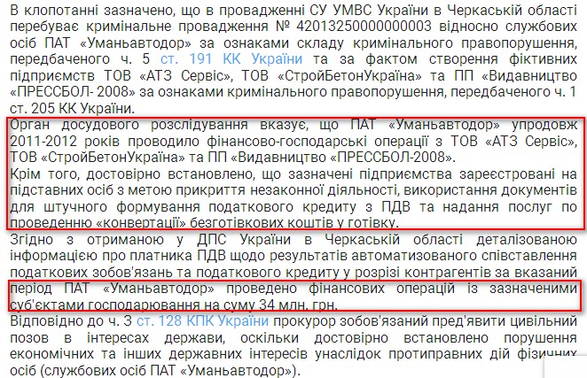 Під час ревізії фінансово-господарської діяльності Укравтодору протягом 2010-2012 років Державна фінансова інспекція виявила порушень на 225 млн. гривень. А найбільшого підрядника Державної служби автомобільних доріг, Уманьавтодор, звинуватили у привласненні 34 млн. грн.