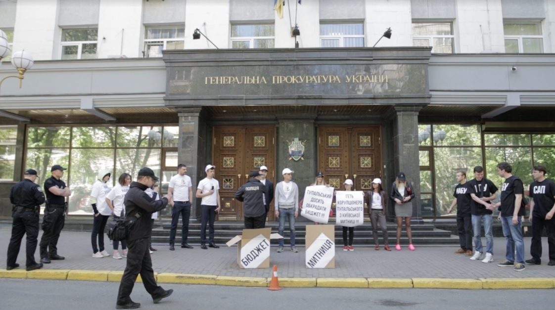 Під стінами СБУ, ГПУ, НАБУ, САП та ДФС пройшов мовчазний сатиричний флеш-моб "Як жирує керівник-корупціонер Київської регіональної митниці Сергій Тупальський". Організувала і провела акцію громадська організація «Українська громадська рада» разом із актерами-добровольцями.