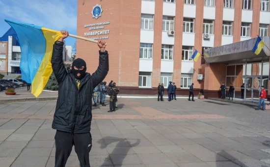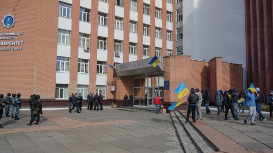 «Сегодня утром стал свидетелем, как группа молодых людей, с украинской символикой, пыталась пройти в Днепропетровский Государственный Университет Внутренних Дел (ДГУВД).