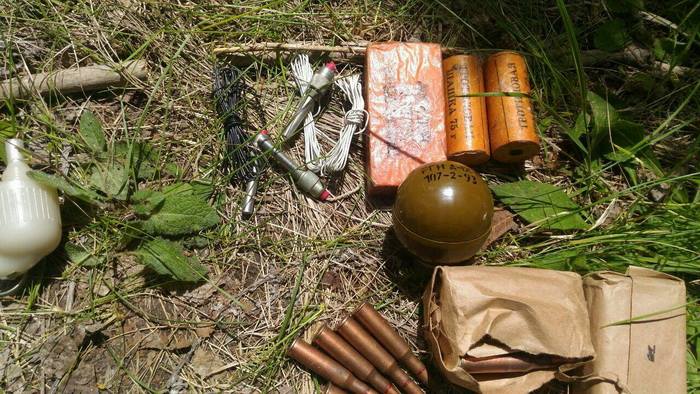 Правоохранители сообщили, что найденное оружие не производят в Украине или оно не находится на вооружении украинских Вооруженных Сил. Из тайника изъяли гранату РГН с ударно-дистанционным запалом, 350 граммов тротила в шашках, три электродетонатора ЭДП-Р и почти полтысячи патронов различного калибра.