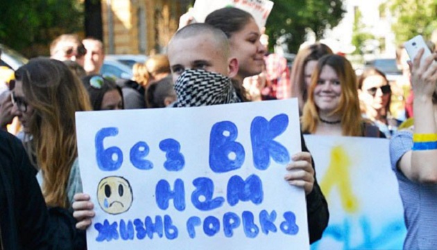 Сегодня, 19 мая, возле Администрации президента Украины собрался немногочисленный митинг, участники которого требуют открыть доступ к запрещенной российской соцсети ВКонтакте.