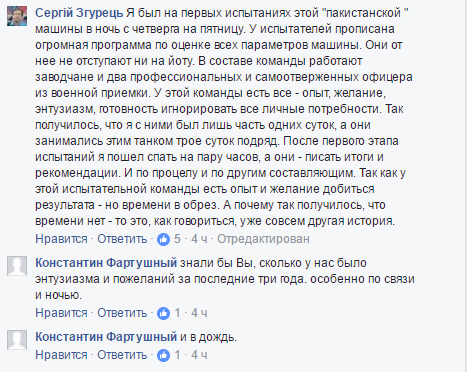 Также военный эксперт сообщил подробности испытаний "Оплота" в комментариях к своему посту.