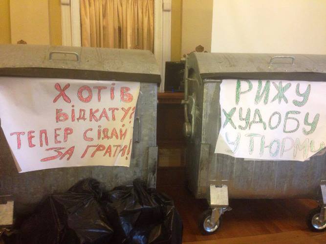 Заявления Садового крайне негативно восприняли активисты. В здание мэрии принесли мусорные баки.